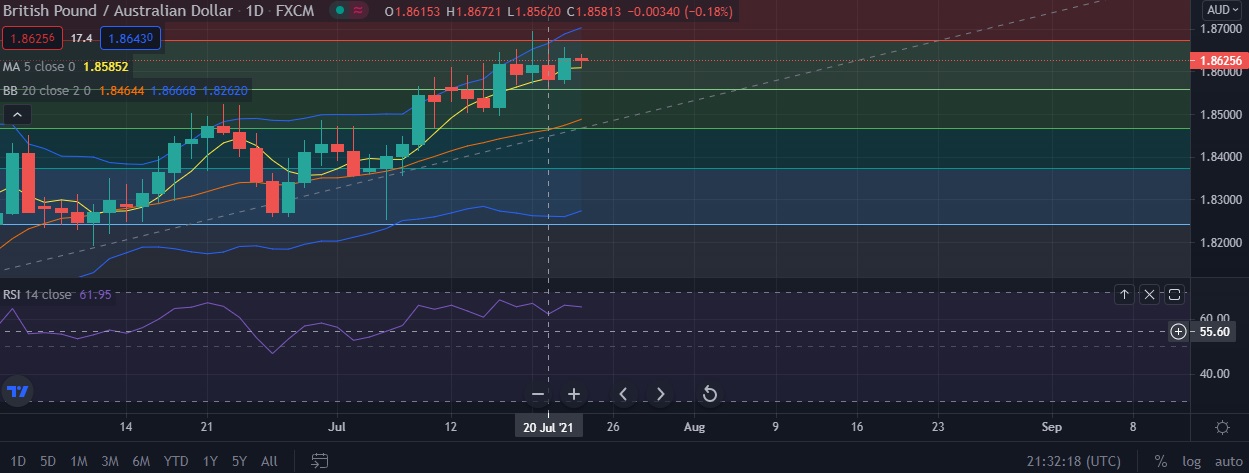 • The pair hit daily high at 1.8655, it was last trading at 1.8634 at GMT 19:20.