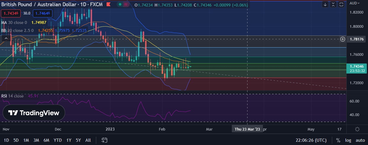 • Immediate support is seen at 1.7379 (38.2% fib) and break below could take the pair towards 1.7269 (23.6%fib).