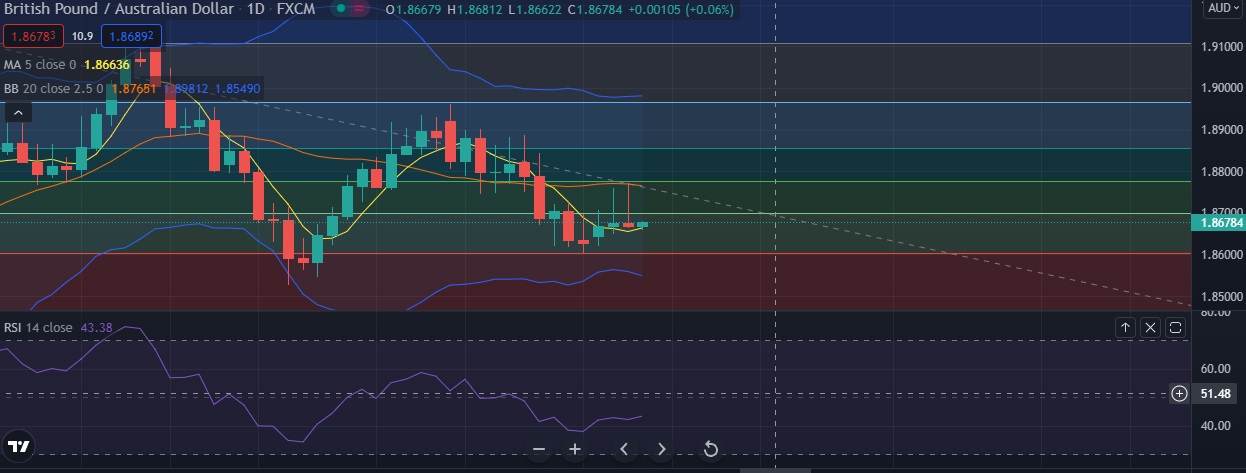 • Immediate support is seen at 1.8661 (5DMA) and break below could take the pair towards 1.8603 (23.6%fib).