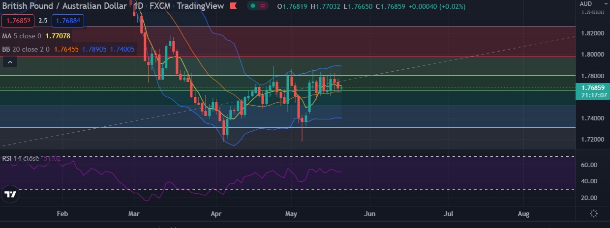• Immediate resistance is located at 1.7709 ( 5DMA), any close above will push the pair towards 1.7801 ( 38.2% fib).
