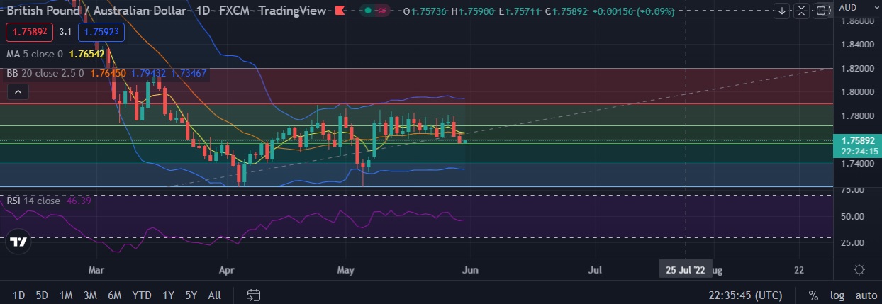 • Immediate support is seen at 1.7568(50%fib )and break below could take the pair towards 1.7509 (20th April low ).