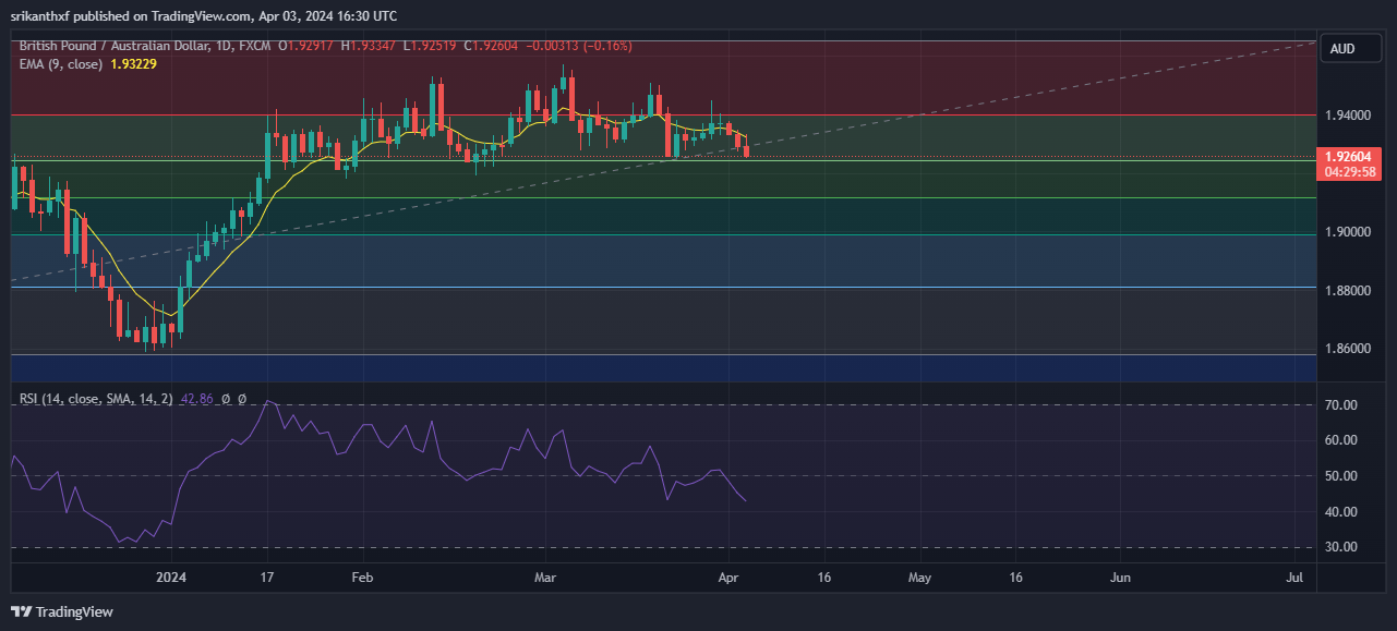 • Immediate resistance is located at 1.9322(9EMA), any close above will push the pair towards 1.9400(23.6%fib)