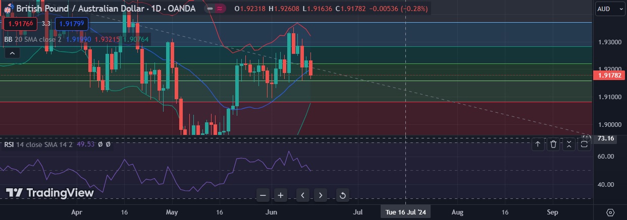 • Strong support is seen at 1.9159 (38.2% fib)and break below could take the pair towards 1.9080 (23.6% fib).