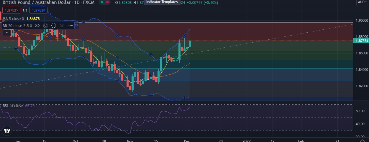 • GBP/AUD hits intraday high at 1.8789 and it was last trading at 1.8751.