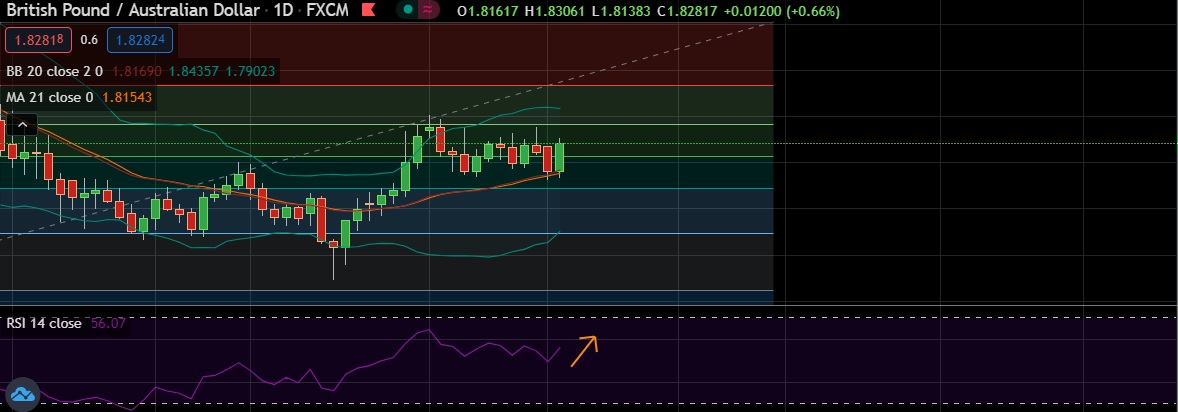 • The pair hit daily high at 1.8304 and was last trading at 1.8281 at (GMT 18:00).The cross has traded in the range of 1.8138-1.8304 thus far on Tuesday.