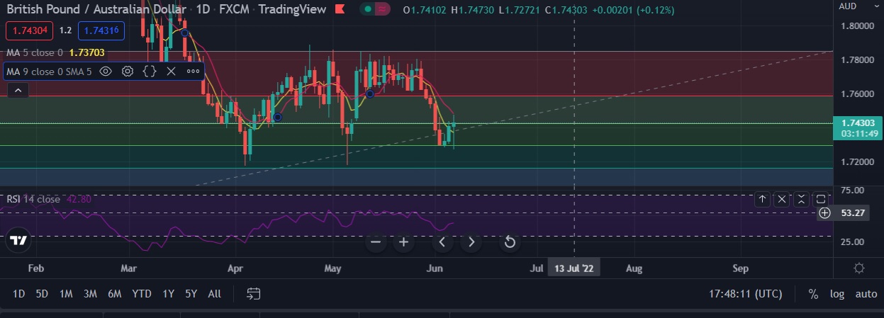 Recommendation: Good to buy on dips around 1.7400 with stop loss of 1.7300 and target price of 1.7500.