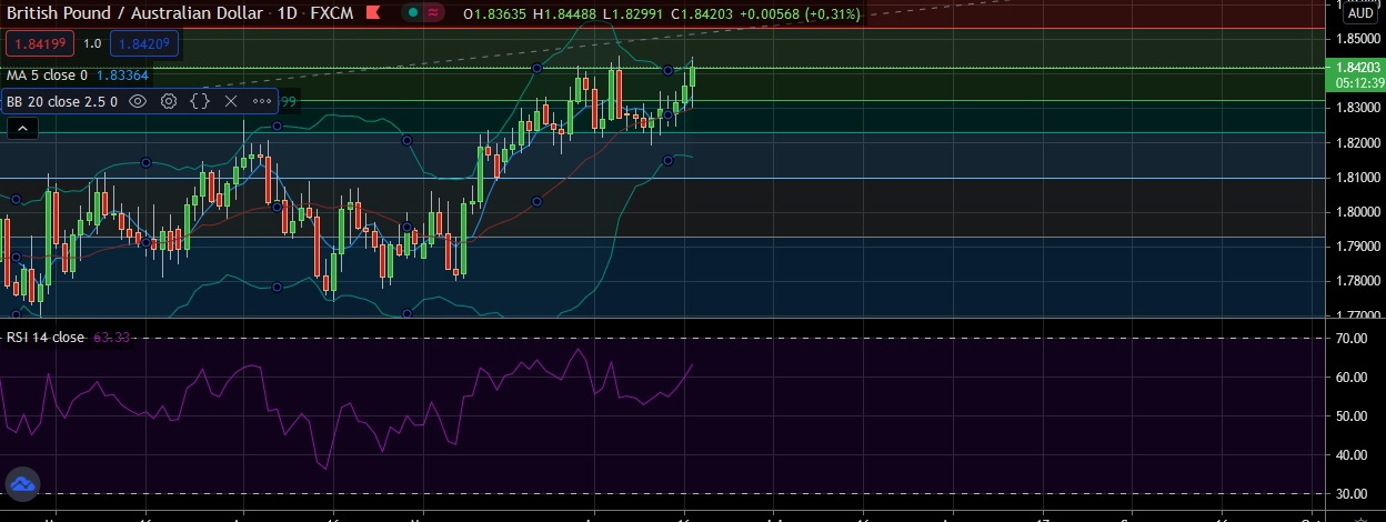Recommendation: Good to buy on dips around 1.8410, with stop loss of 1.8320 and target price of 1.8500.