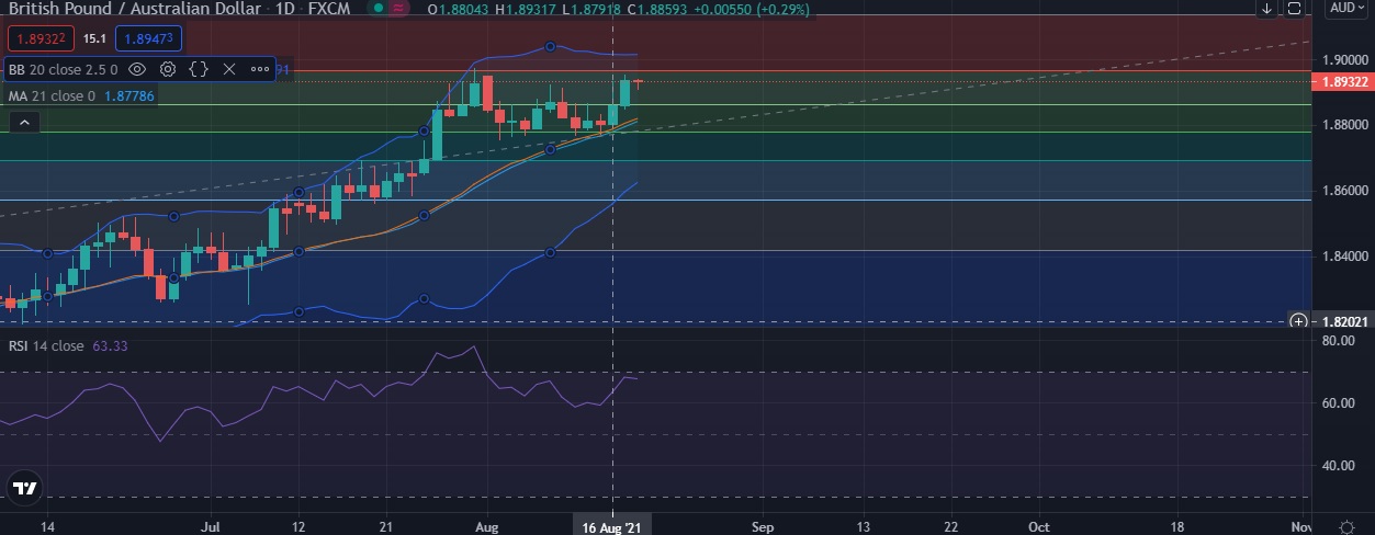 •The pair hit daily high at 1.8953 and was last trading at 1.8946 at (GMT 21:50).