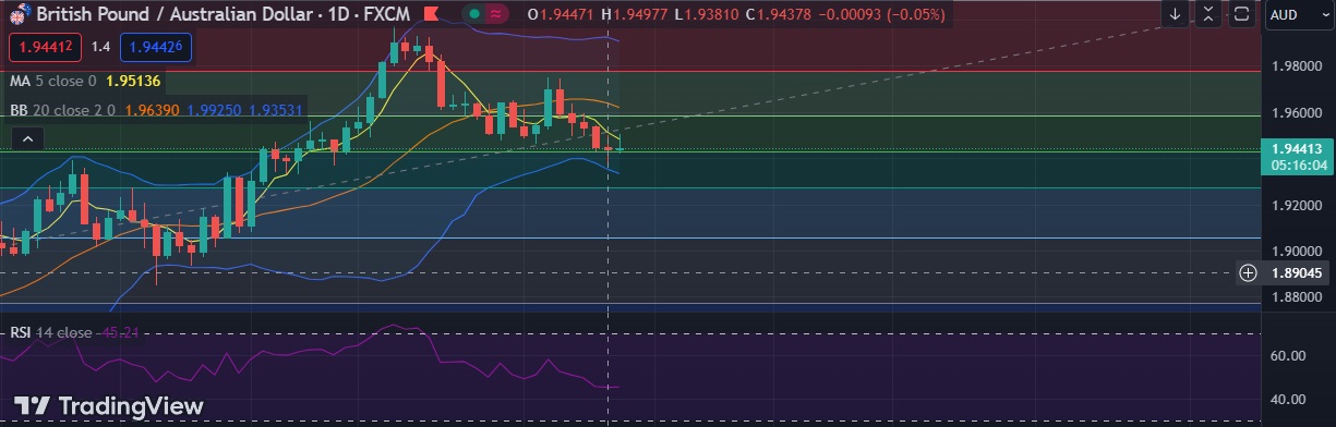 • Immediate support is seen at 1.9433 (50%fib) and break below could take the pair towards 1.9340(Lower BB).