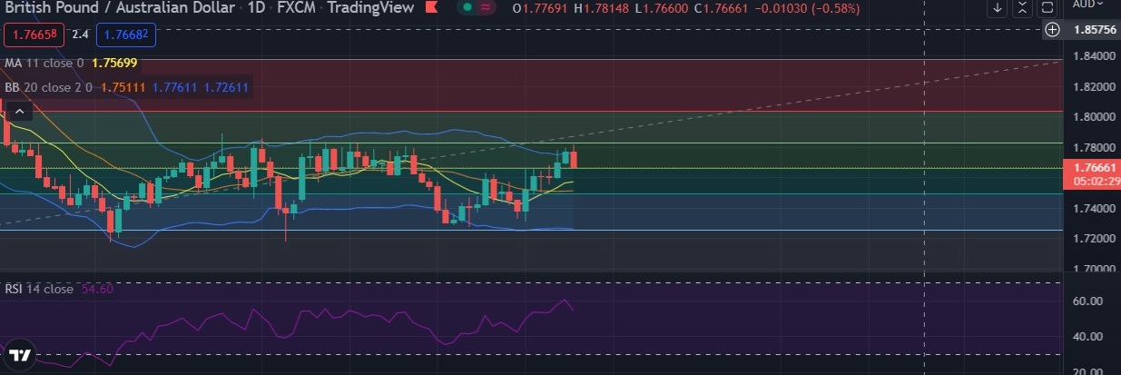• Strong support is seen at 1.7662 (50%fib) and break below could take the pair towards 1.7569(11DMA).