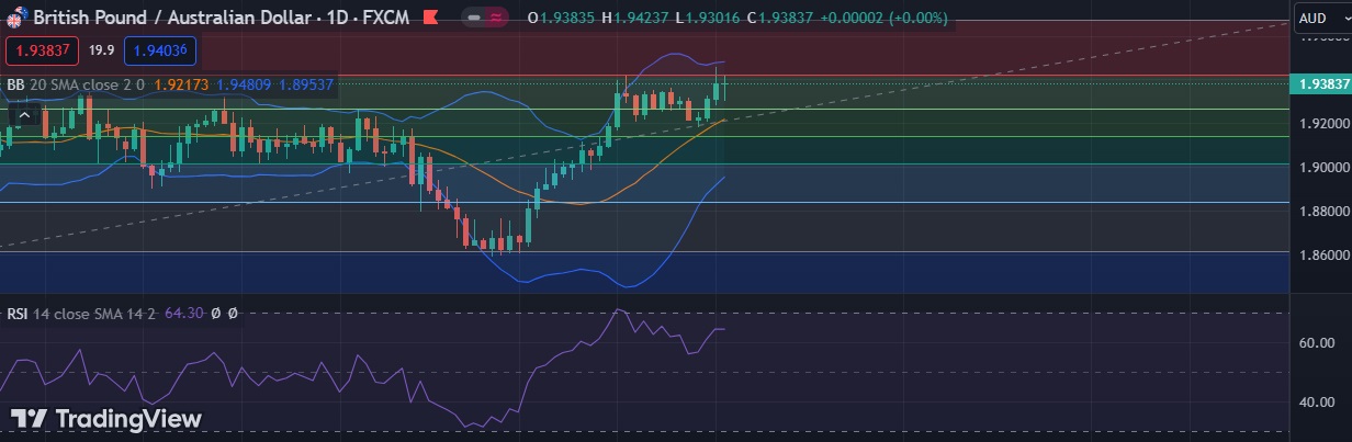• Immediate resistance is located at 1.9419(23.6%fib), any close above will push the pair towards 1.9480 (Higher BB).