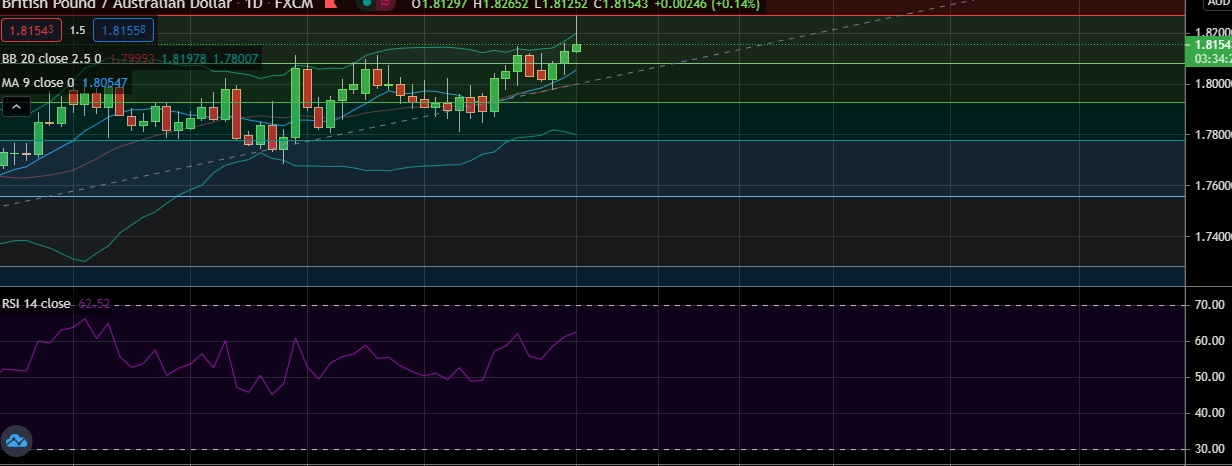 • Strong support is seen at 1.8123 (Daily low ) and break below could take the pair towards 1.8080 (38.2%fib).
