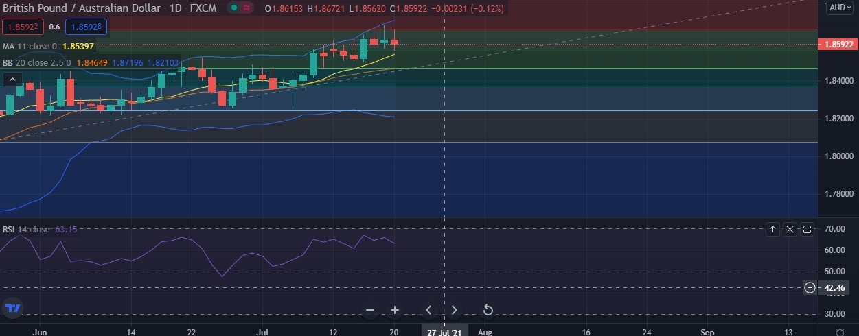• At GMT 15:13, the pair was trading down 0.13 percent at 1.8591 after reaching daily high at 1.8592.
