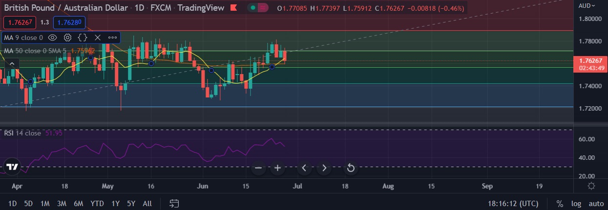 • Strong support is seen at 1.7600 (50DMA ) and break below could take the pair towards 1.7567 (50 %fib).