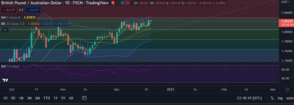• Immediate resistance is located at 1.8300 (23.6% fib), any close above will push the pair towards 1.8316 (Higher BB).