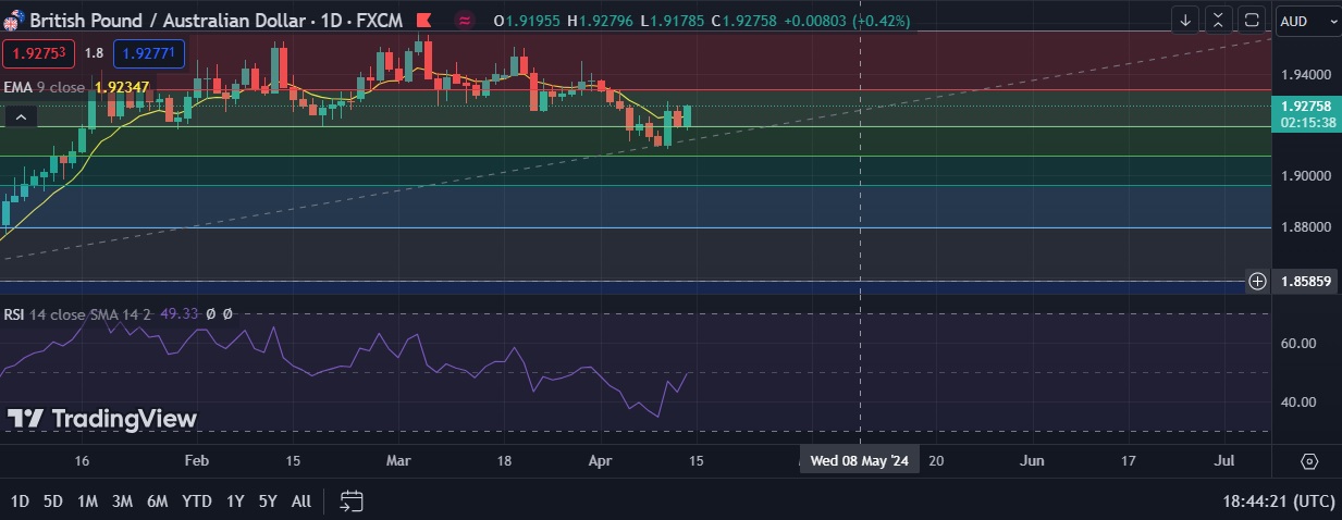 • Immediate support is seen at 1.9234 (9EMA) and break below could take the pair towards 1.9191(38.2%fib).