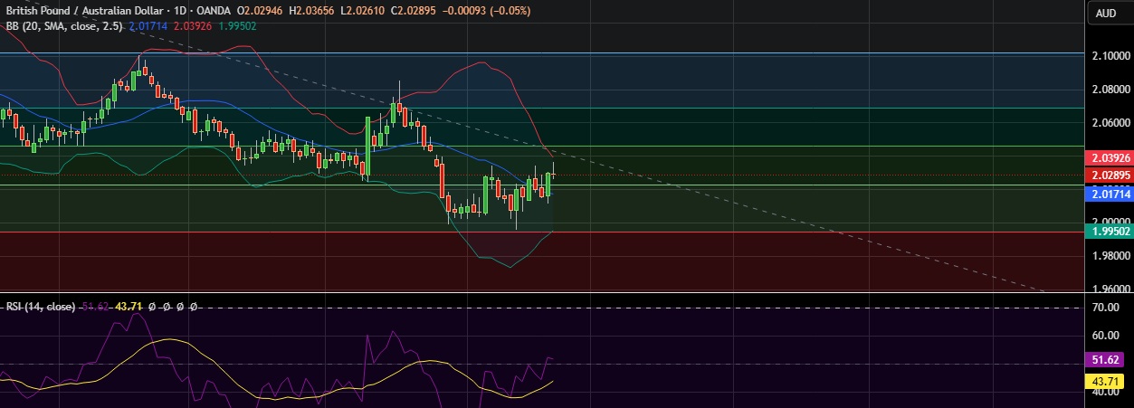 • Immediate resistance is located at 2.0401(Higher BB), any close above will push the pair towards 2.0461(50%fib).