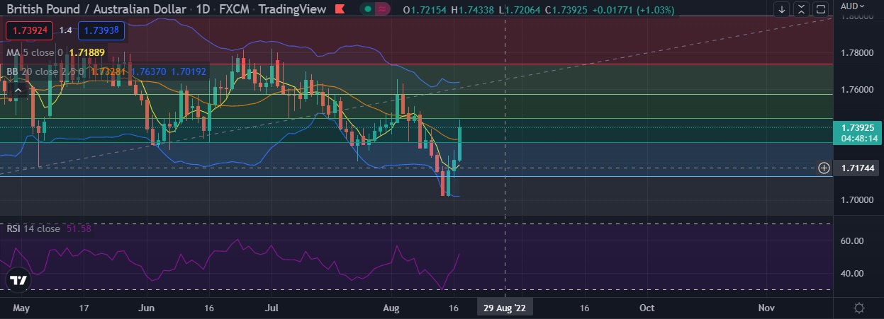 • At GMT 16:07, the pair was trading up 1.04 percent at 1.7393 after reaching daily high at 1.7440.