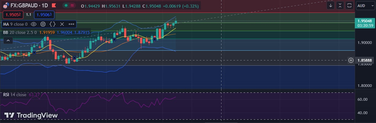 • Immediate resistance is located at 1.9570( Higher BB), any close above will push the pair towards 1.9687(23.6%fib).