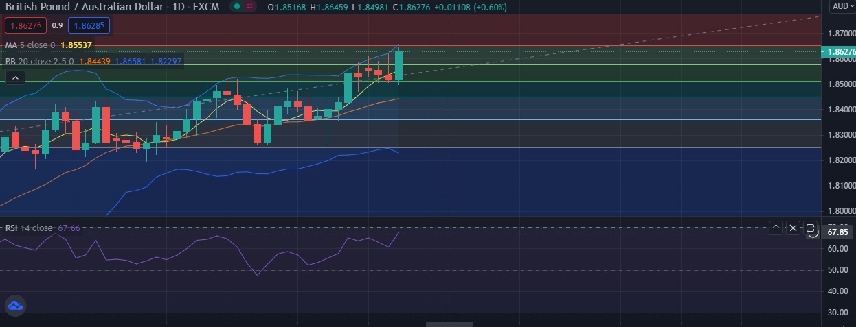 • The pair currently is approaching resistance at 1.8651( 23.6%fib). A break above 11.8651 would unmask 1.8700 level in the short term.
