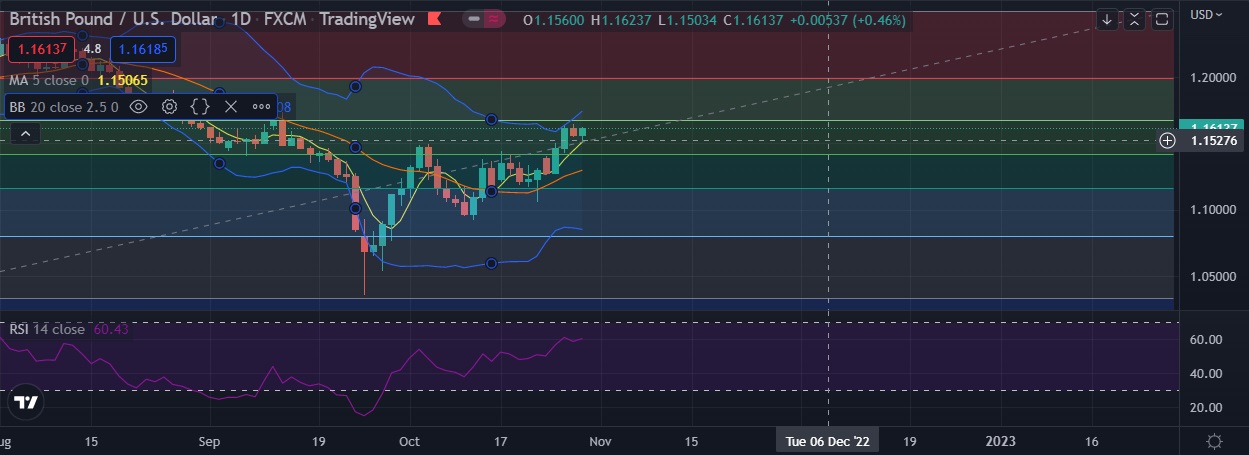 • Newfound UK political stability, elevated BoE rate expectations to counteract rising UK inflation has given bulls momentum for further gains.