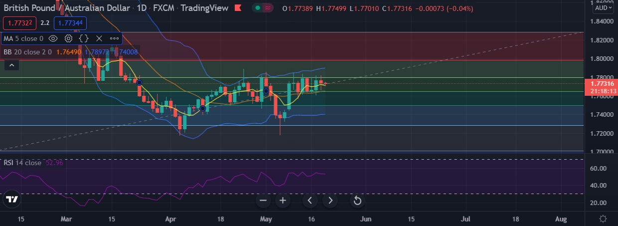 • Strong support is seen at 1.7707 (5DMA) and break below could take the pair towards 1.7649 (50% fib).