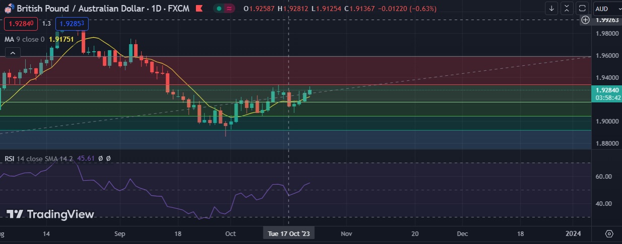 • Strong support is seen at 1.9221(9DMA) and break below could take the pair towards 1.9176(38.2%fib).