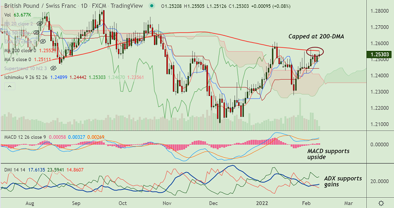 Resistance levels - 1.2550 (converged 200-DMA and trendline), 1.2563 (Feb 3 high), 1.2609 (Yearly high)