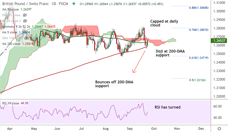Support - 1.2581 (200-DMA), Resistance - 1.2656 (Cloud base)