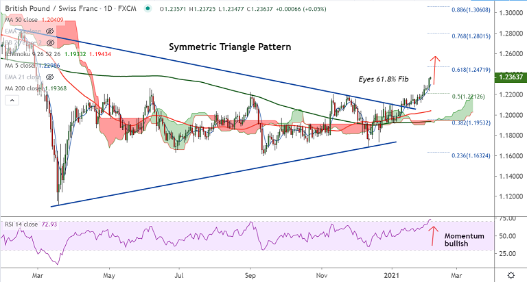 GBP/CHF spiked past 110W EMA resistance on Thursday's trade to confirm upside momentum in the pair.