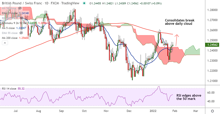 Summary: GBP/CHF poised for further upside. Weakness only below daily cloud. Scope for retest of 200-DMA at 1.2560.