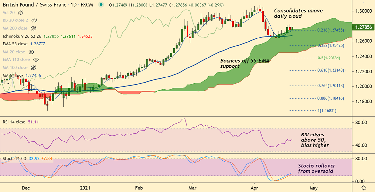 GBP/CHF was trading 0.33% higher on the day at 1.2789 at around 10:45 GMT.