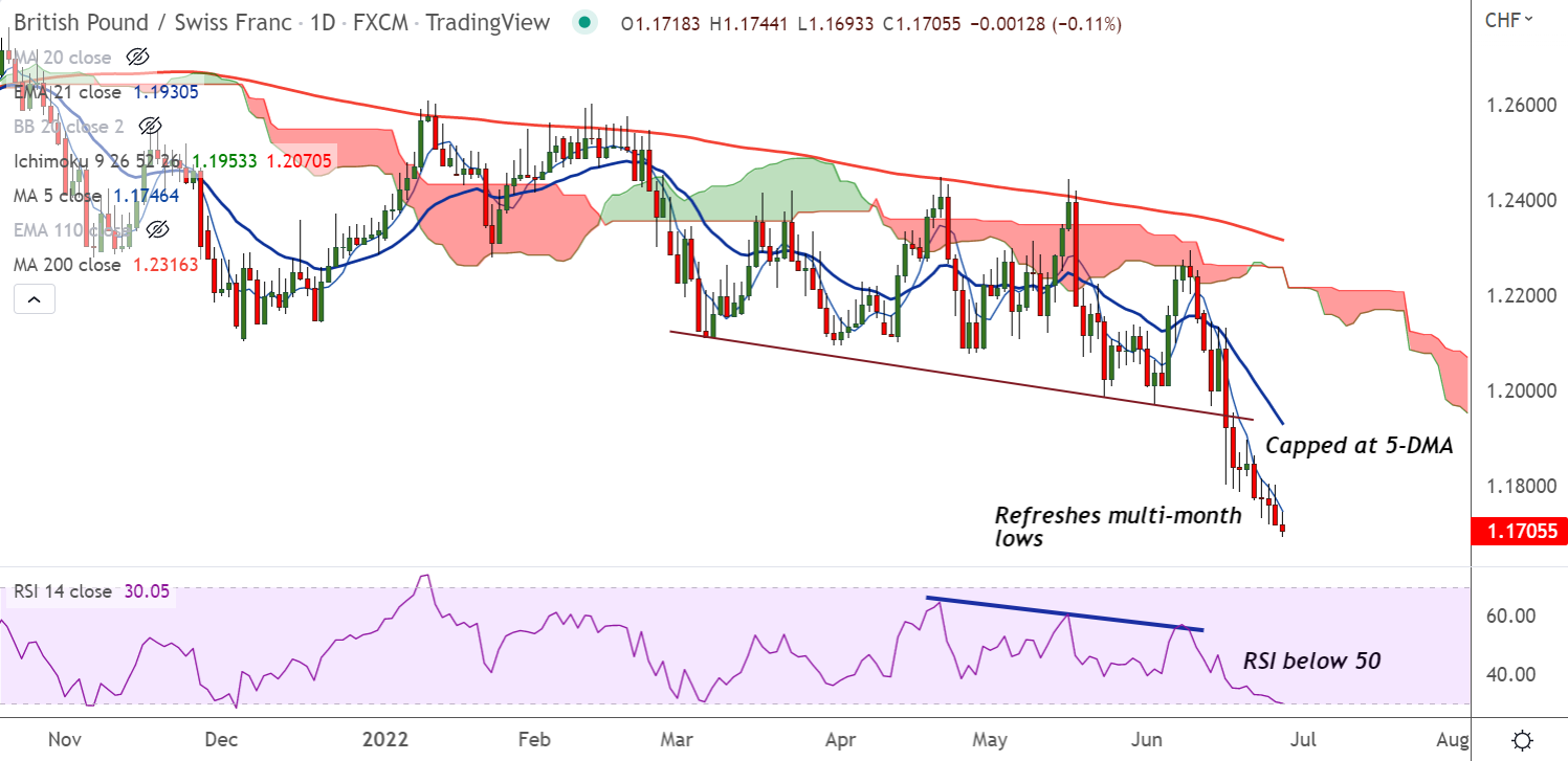 GBP/CHF is extending weakness, the pair refreshes 18-month low below 1.17 mark