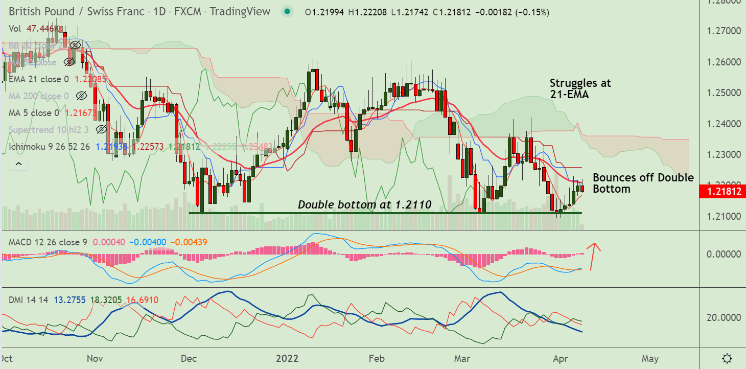 Support levels - 1.2203 (21-EMA), 1.2183 (5-DMA), 1.2110 (Trendline)