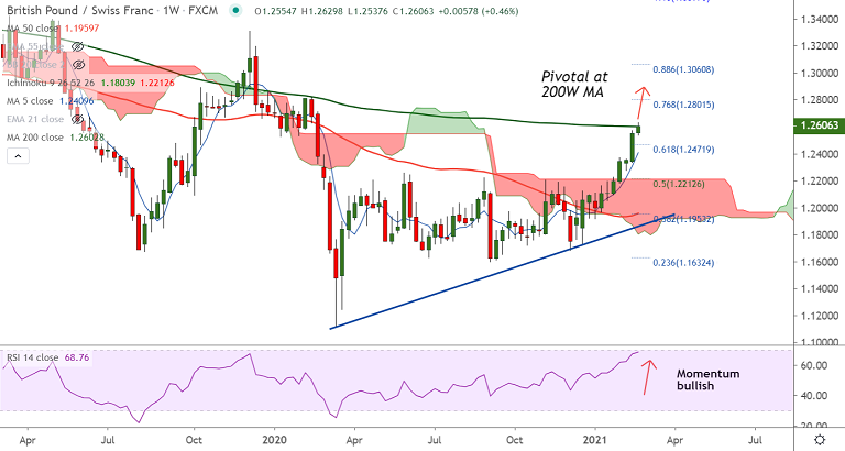 GBP/CHF was trading 0.47% higher on the day at 1.2607 at around 11:00 GMT, outlook bullish.