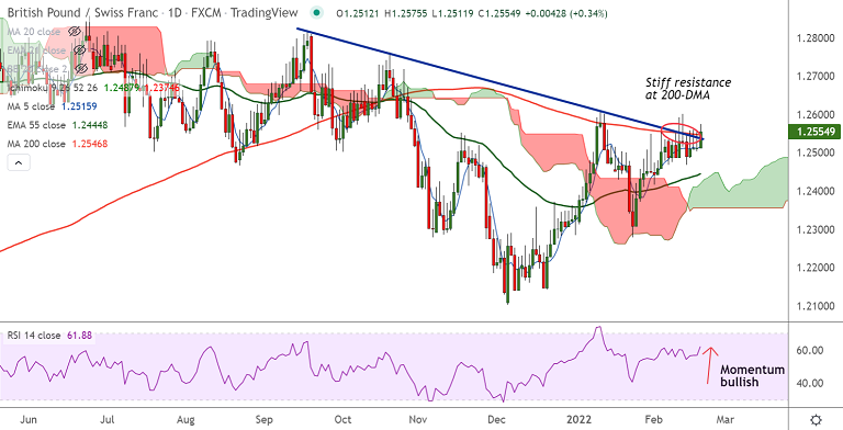 GBP/CHF trades with a bullish technical bias. Decisive close above 200-DMA will fuel further gains in the pair.