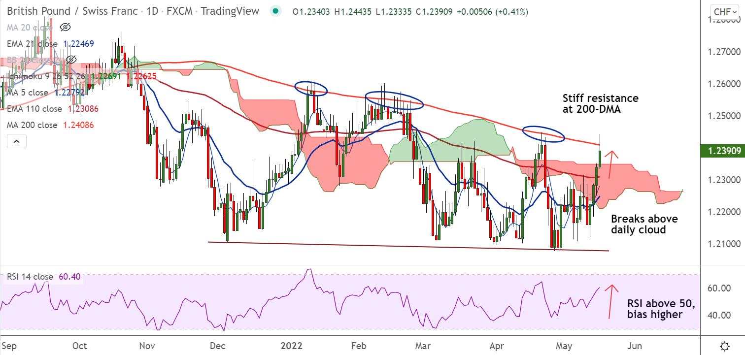 The pair has faltered at 200-DMA on several occasions and decisive break above is required for further gains.