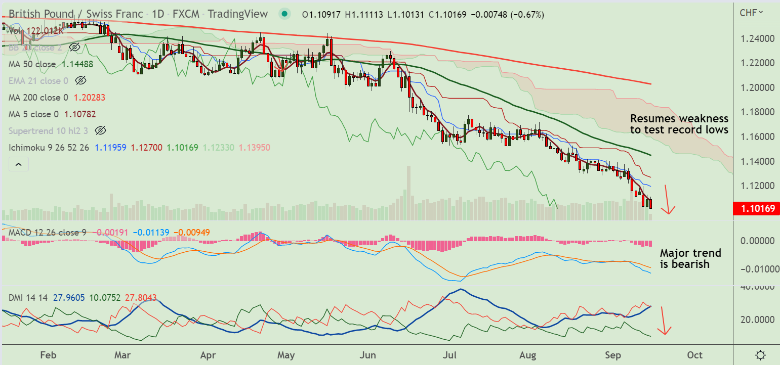 Summary: GBP/CHF has resumed weakness after brief pause on Wednesday's trade. Major trend is bearish. The pair is poised to test fresh record lows.