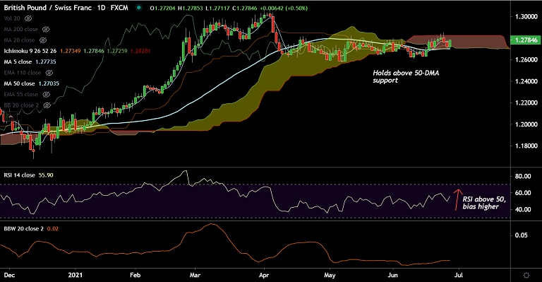 Price action has bounced off 50-DMA which is strong support at 1.2703, decisive break above daily cloud will fuel further upside.