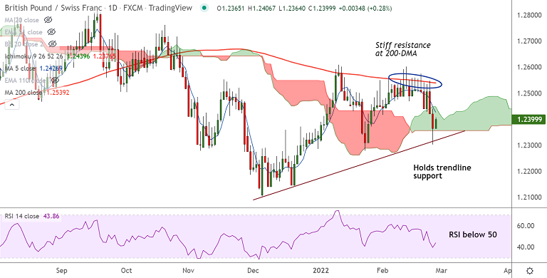 Support - 1.2320 (Trendline), Resistance - 1.2425 (5-DMA)