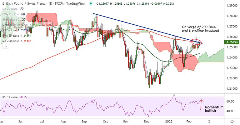 Summary: GBP/CHF is trading with a bullish bias. Watch out for decisive breakout above 200-DMA for further gains.