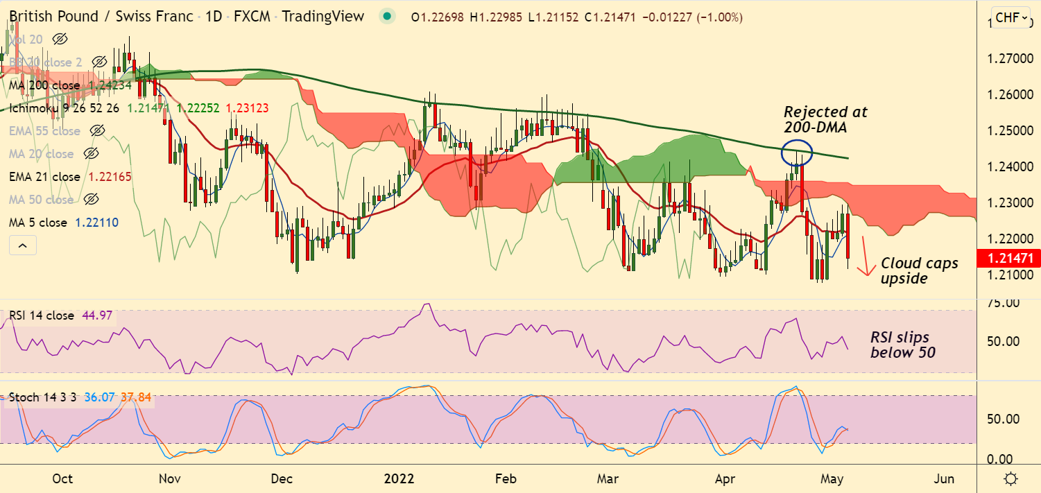 - Rejection at 200-DMA and thereafter daily cloud has reinforced downside in the pair