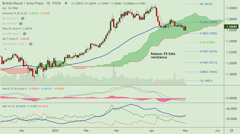 GBP/CHF has shown a solid rebound from fresh 10-week lows at 1.2594 and was trading 0.42% higher on the day at 1.2651 at around 10:55 GMT.