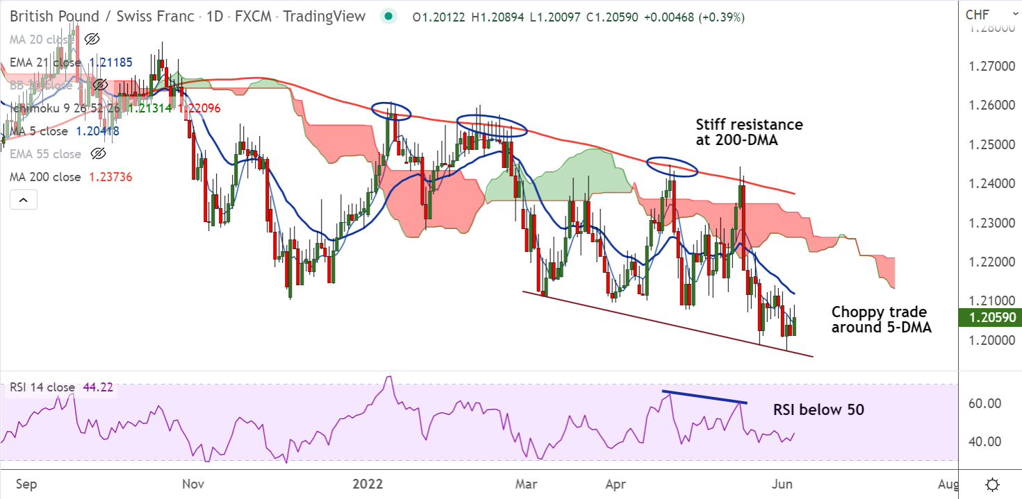 Summary: GBP/CHF recovery lacks traction. Break above 21-EMA could change near-term dynamics.