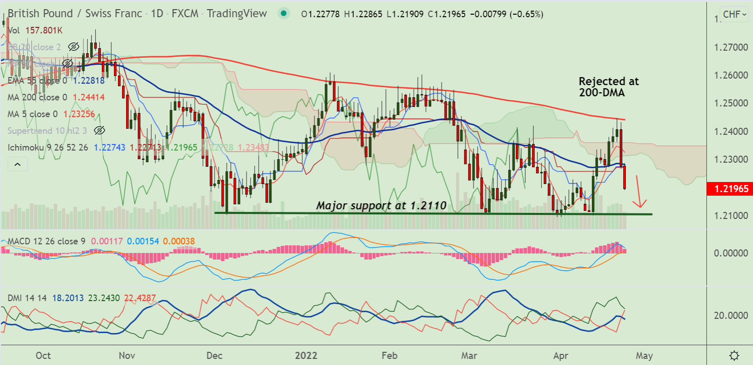 - The pair is extending weakness for the second consecutive session after being rejected at 200-DMA