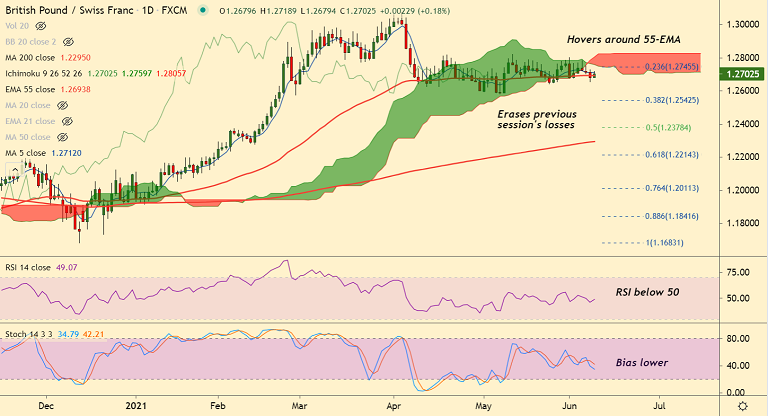 GBP/CHF caught fresh bids, spiked past 1.27 handle as the British pound remains buoyed on hawkish comments from BoE's Haldane.