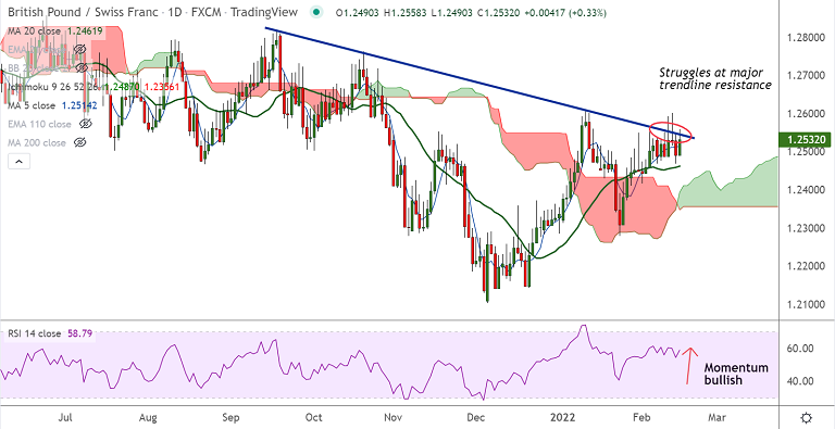 Worries over an imminent Russian invasion of Ukraine continues to weigh on investors' sentiment, supporting safe-haven Swiss franc and capping upside in the pair.