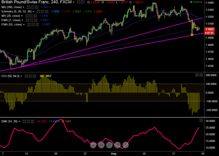 - GBP/CHF has broken major trend line support 1.5150 and declined till 1. is currently trading at 1.5040