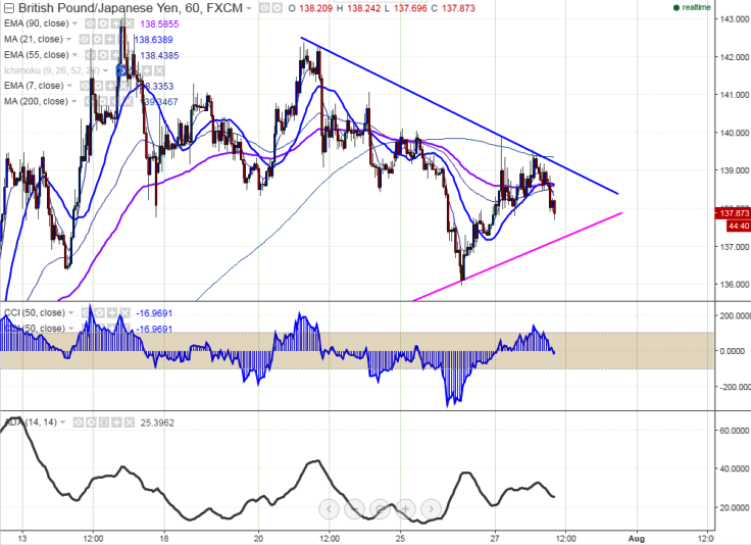 - Major resistance- 139.30 (trend line joining 142.39 and 139.90).