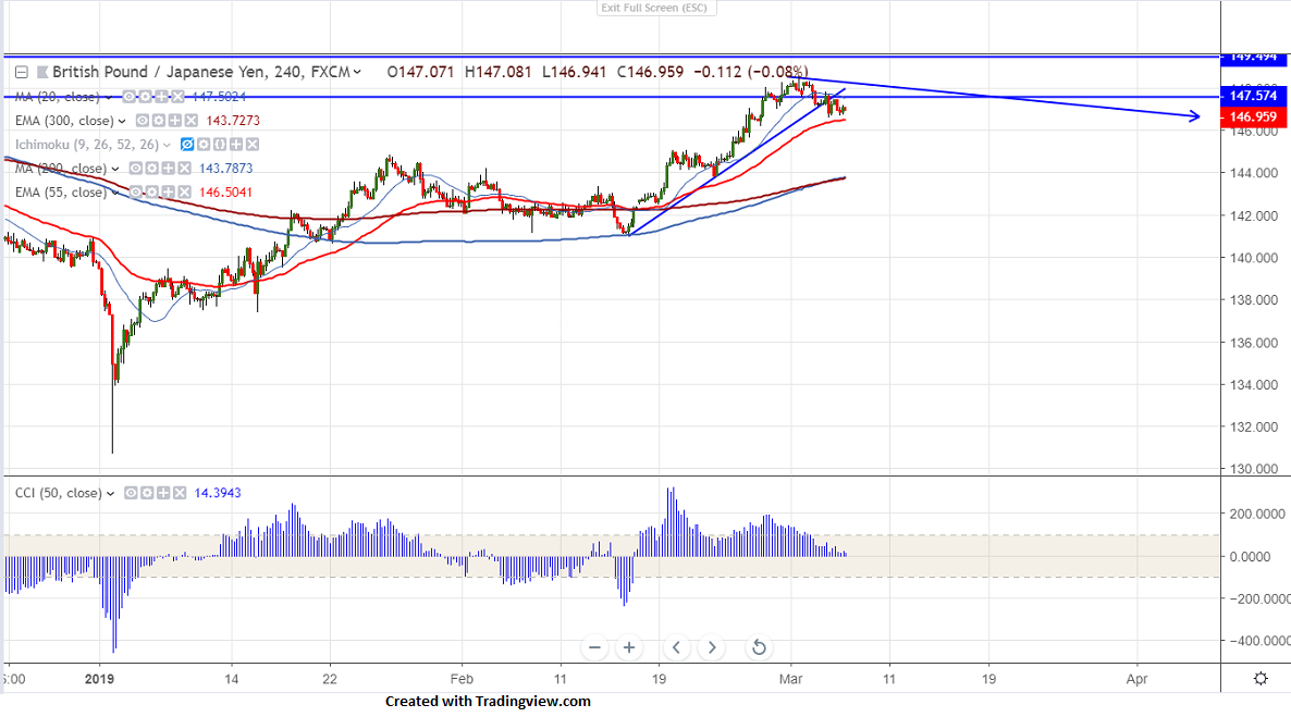 GBPJPY is trading weak for third consecutive day and lost nearly 200 pips from the high of 148.57 on account of Brexit uncertainty. GBP was trading lower against all major especially with USD and lost more than 250 pips from high of 1.3350 level. The pair hits low of 146.60 and is currently trading around 146.92.